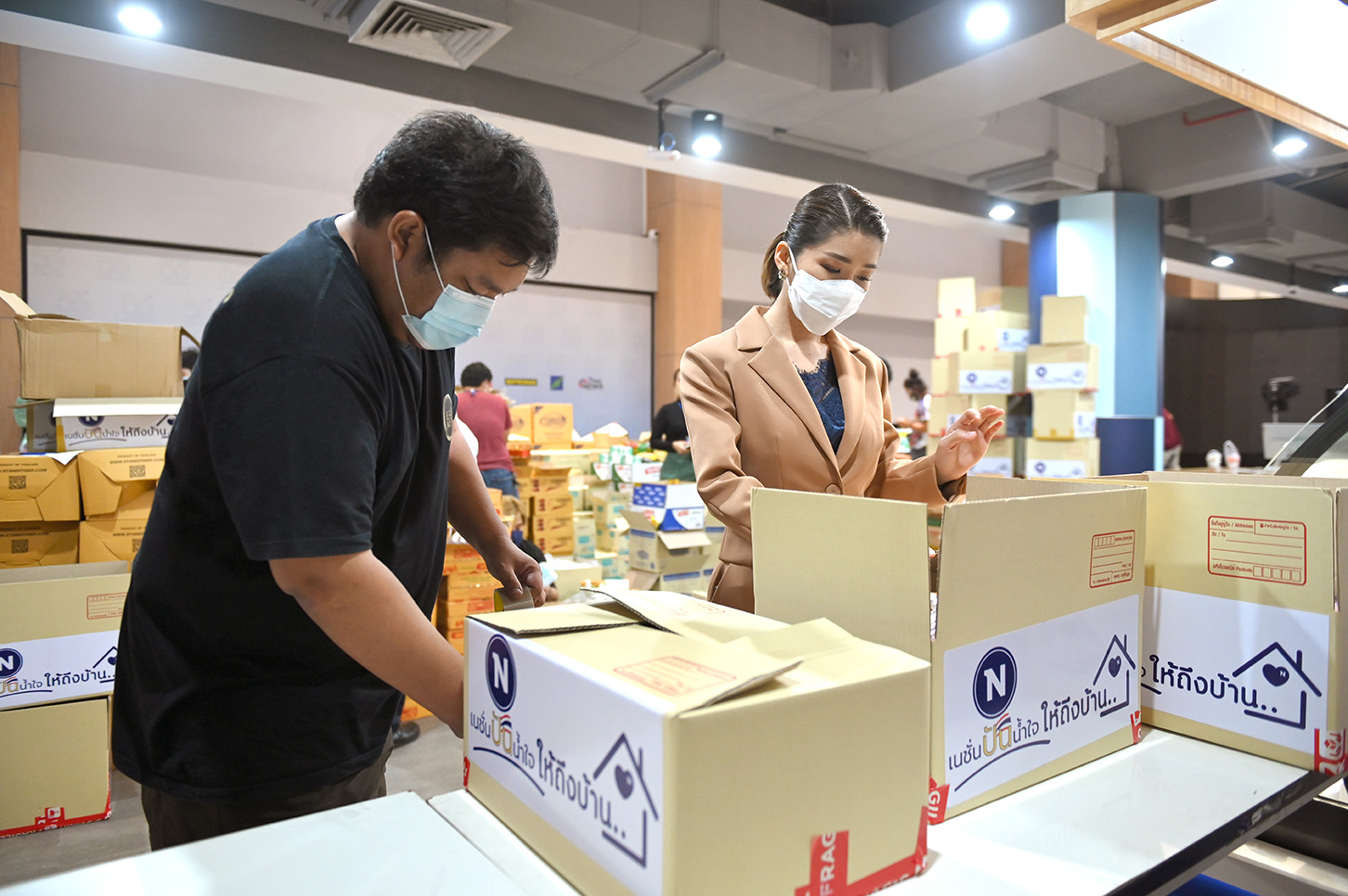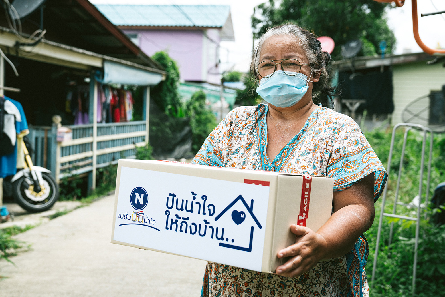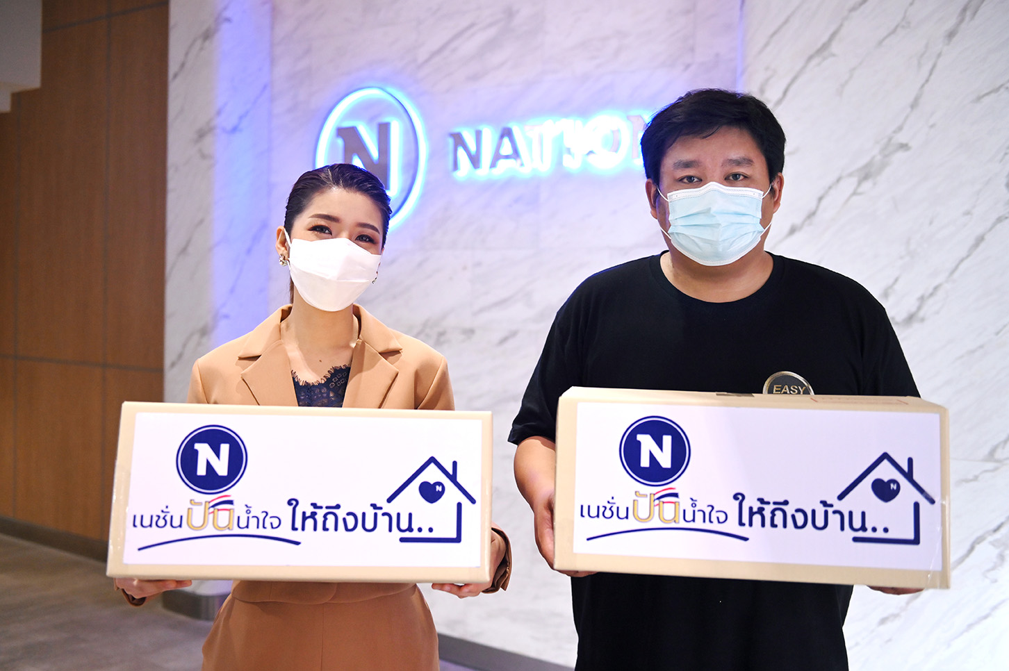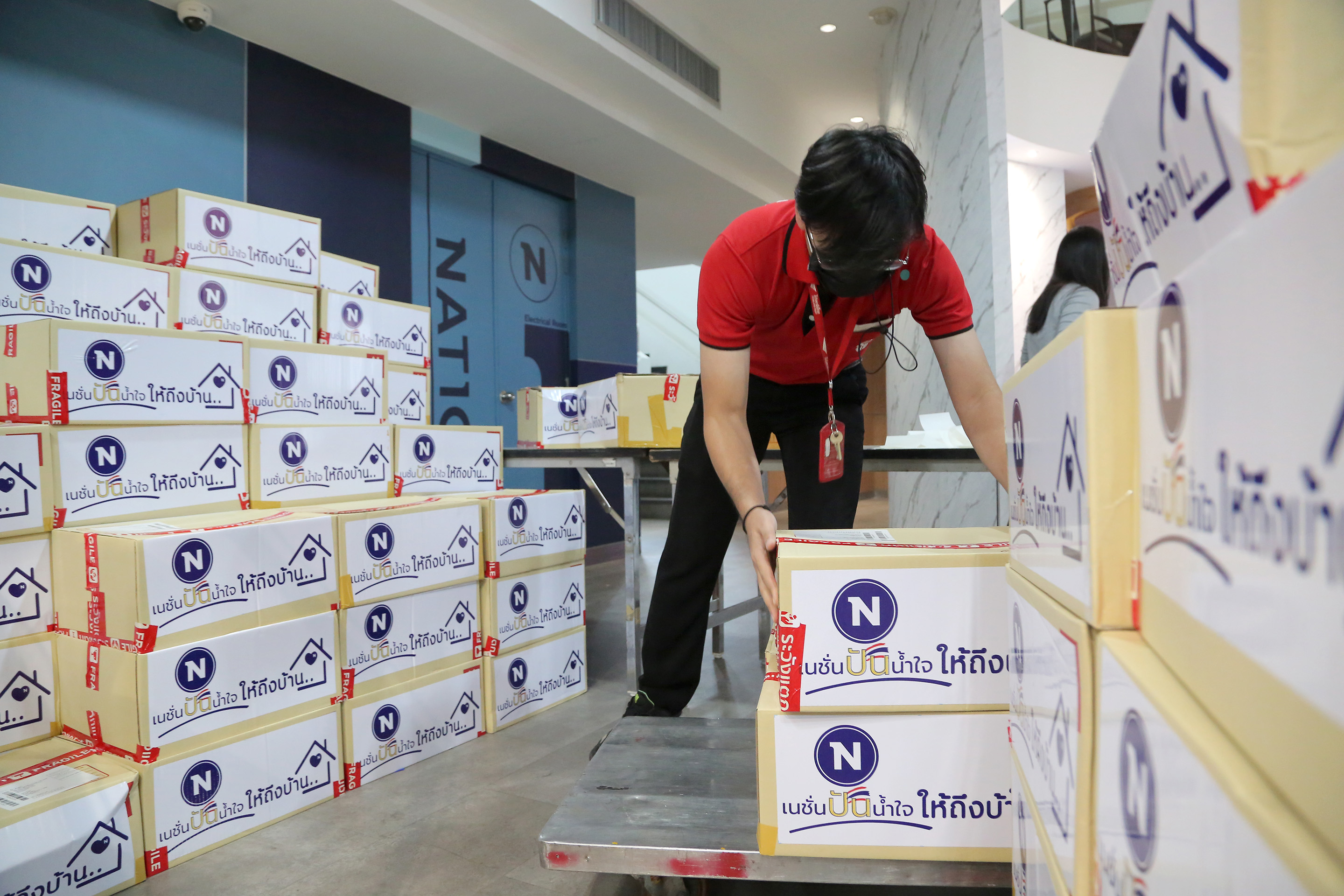 เนชั่นทีวี และ มูลนิธิเนชั่น เดินหน้าปูพรมช่วยเหลือพี่น้องประชาชนที่ได้รับความเดือดร้อน และผลกระทบจากการแพร่ระบาดของโควิด-19 ผ่านโครงการ “ปันน้ำใจ...ให้ถึงบ้าน” เป็นสะพานแห่งธารน้ำใจสู่พี่น้องประชาชนคนไทย โดยการมอบกล่องสิ่งของอุปโภคบริโภคและของจำเป็นในการดำรงชีพ ส่งตรงถึงหน้าบ้าน ในพื้นที่ควบคุมสูงสุดและเข้มงวด “สีแดงเข้ม” รวม 10 จังหวัด คือ กรุงเทพมหานคร นนทบุรี ปทุมธานี สมุทรปราการ สมุทรสาคร นครปฐม สงขลา ยะลา ปัตตานี และ นราธิวาส เพื่อความปลอดภัยและหลีกเลี่ยงการสัมผัส